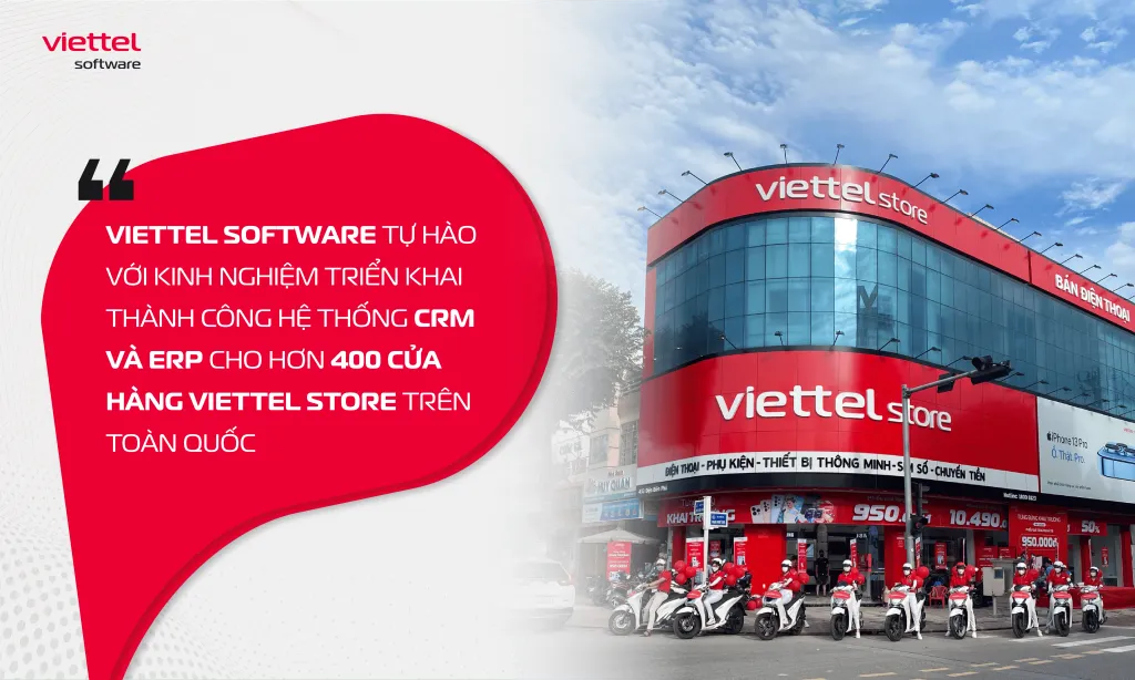 Viettel Software tự hào với kinh nghiệm triển khai thành công hệ thống CRM và ERP cho hơn 400 cửa hàng Viettel Store trên toàn quốc; hỗ trợ các doanh nghiệp vừa và nhỏ trong lĩnh vực phân phối và bán lẻ bằng các giải pháp tối ưu chi phí. Đặc biệt, Viettel Software luôn ứng dụng công nghệ mới nhất như AI và Machine Learning để nâng cao khả năng phân tích dữ liệu, tối ưu hóa quy trình vận hành và cá nhân hóa trải nghiệm khách hàng, đáp ứng hiệu quả các yêu cầu đa dạng của thị trường.